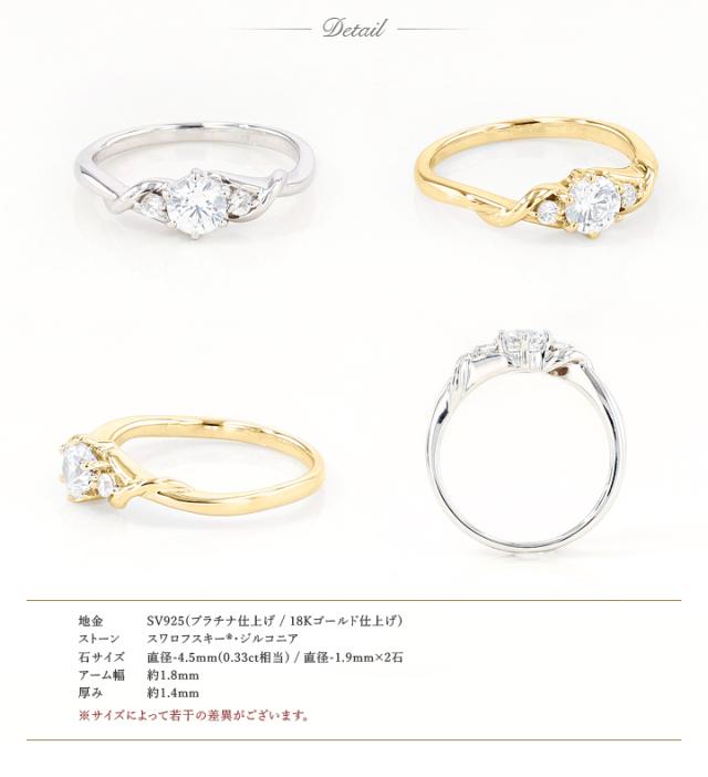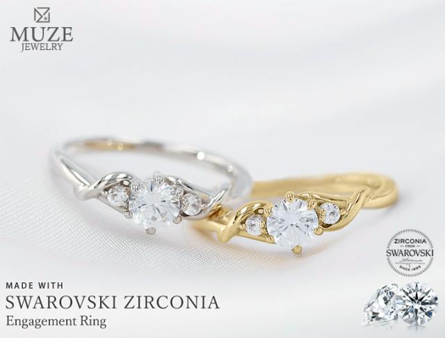 MUZE JEWELRY 直径4.5mm(0.33ct相当)プラチナ仕上げ オーダーメイド プラチナ仕上げ K18ゴールド仕上げ エンゲージリング 婚約指輪 スワロフスキージルコニア使用 リング 一粒 0.33ct プロポーズ サプライズ 記念 made in japan 刻印 名入れ