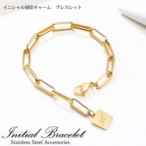 イニシャル ブレスレット【名入れ無料】A~Z シンプルステンレス ゴールド イニシャル刻印 刻印無料 ブレスレット 刻印可能 レディースブレスレット 名入れ工房 きざみ屋 KIZAMIYA