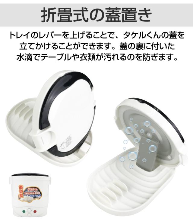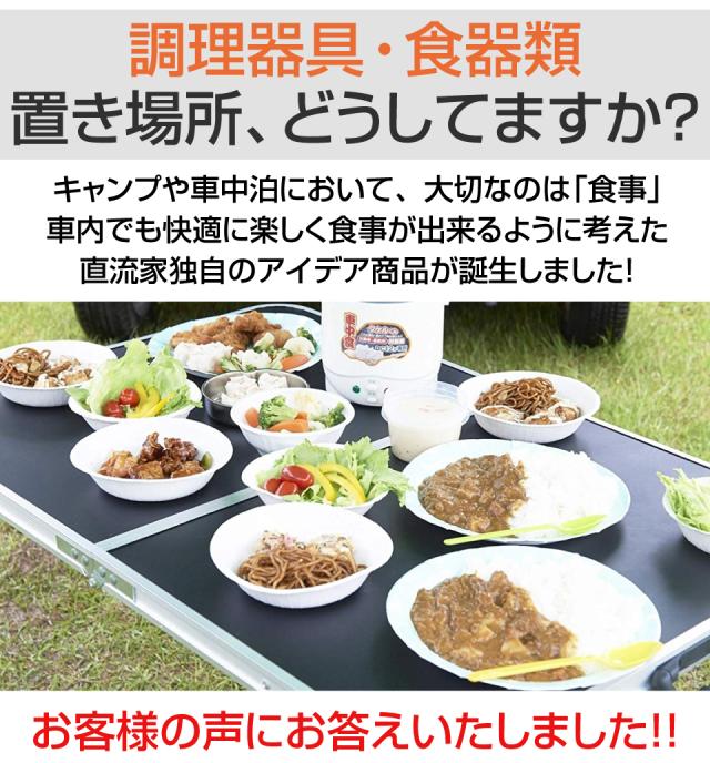 ・車内で調理する際に便利なマルチトレイです。 ・濡れた蓋やしゃもじが車内だと置き場に困りますよね… ・このトレイは小さなスペースで蓋やしゃもじ等をしっかり置けます。 ・蓋を支えるレバーは折り畳み式なので使わない時はすっきり収納できます。 ・箸やスプーンなどを置くのにも便利です。 |