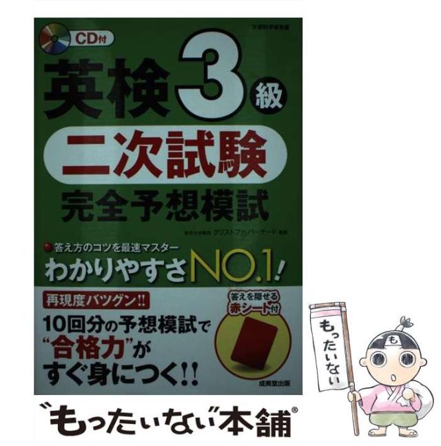 商品名:【中古】 英検3級二次試験完全予想模試 / クリストファ バーナード / 成美堂出版 [単行本]【メール便送料無料】