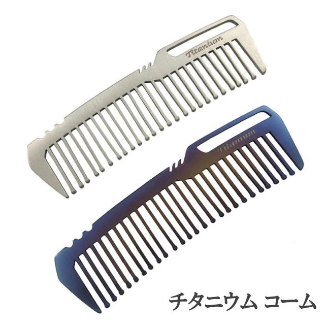 チタン クシ 櫛 コーム チタニウム シルバー ブルー アウトドア 旅行 コンパクト ミニ 携帯 ポケット ヘアー 髪 軽量