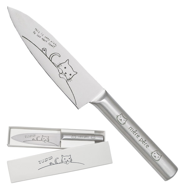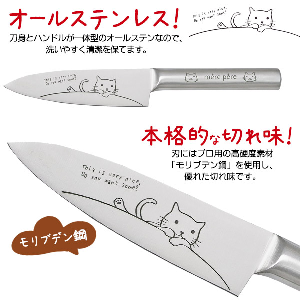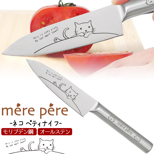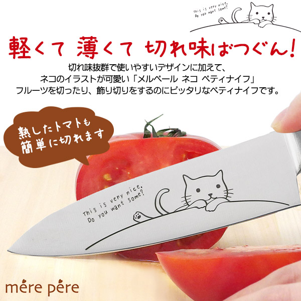 ペティナイフ メルペール ネコ モリブデン鋼 切れ味抜群 軽量 62g 軽い 女性向け かわいい フルーツ 飾り切り キッチン 雑貨 お洒落 果物ナイフ オールステンレス mere pere ナイフ 包丁 ほうちょう 送料無料