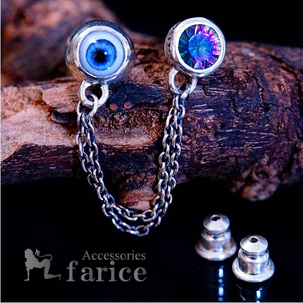天然石 ミスティックトパーズ 目玉 シルバー925 2ホール チェーン ピアス