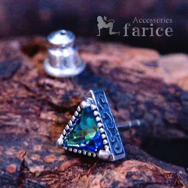 片耳ピアス ミスティックトパーズ トライアングル 三角 アラベスク サイド模様 シルバー925 スタッドピアス メンズ レディース ユニセックスデザイン ピアス