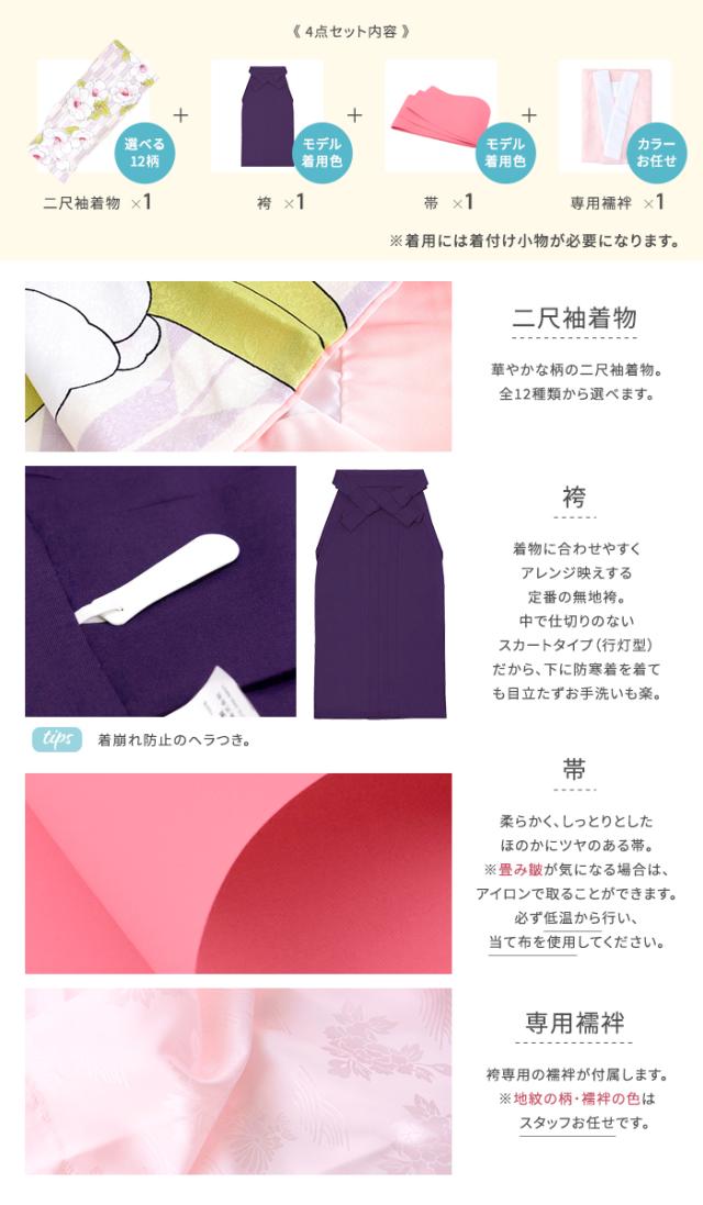 袴セット 卒業式 小学生 大学生 購入 レディース フルセット 袴 ジュニア 女性 女の子 4点セット 二尺袖着物 袴下帯 長襦袢 二尺袖襦袢 謝恩会 レトロ モダン CCMD