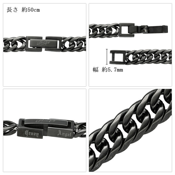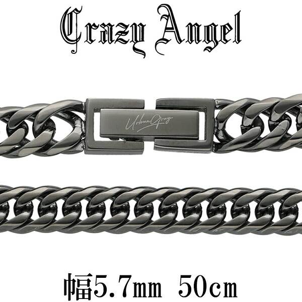 クレイジーエンジェル Crazy Angel サージカルステンレス メタルブラック 6面カットダブル喜平チェーン 幅5.7mm 50cm ネックレス ブランド メンズ