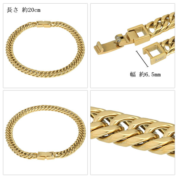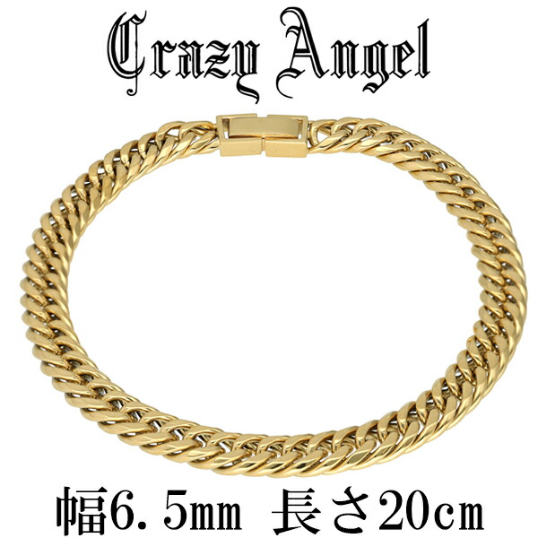 クレイジーエンジェル Crazy Angel サージカルステンレス ゴールドカラー 6面カットダブル喜平チェーン 幅6.5mm 20cm ブレスレット ブランド