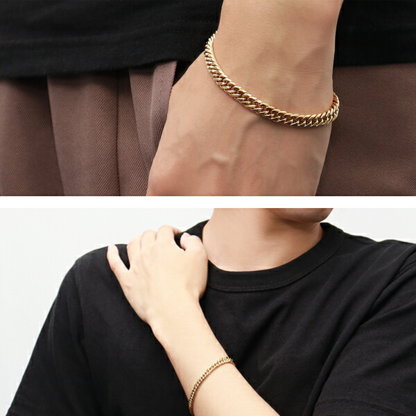 (チェーンブレスレット チェインブレス ステンレスアクセ ブレスレット 喜平 きへい ステンレス サージカルステンレス 金属アレルギー対応 アレルギーフリー メンズ 男性 彼氏 シンプル モード スタイリッシュ ハード ワイルド ゴツめ 太目 太め かっこいい 金色)