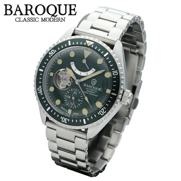 BAROQUE グリーン 腕時計 BA3006シリーズ ブランド ウォッチ BA3006S-03M 時計 メンズ 紳士 かっこいい 自動巻き スケルトン ステンレス