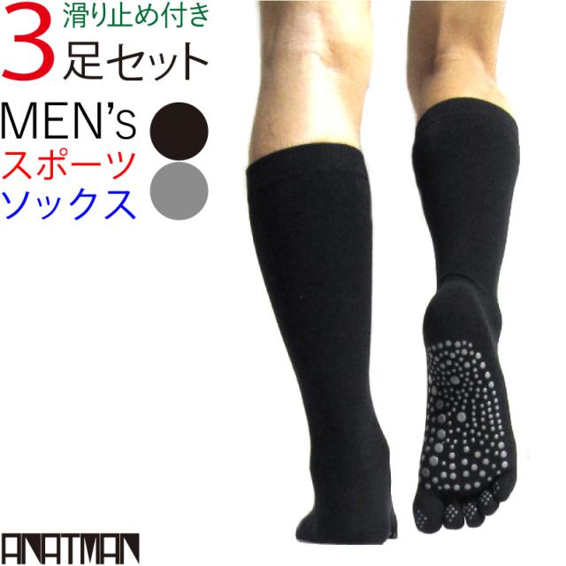 スポーツソックス 靴下 メンズ 5本指 ハイソックス 3足 ブーツ マラソン ランニング ジム テニス すぽーつ ソックス 五本指 滑り止め ロング丈 指あり くつ下 革靴 蒸れない ムレにくい 秋 冬 はいそっくす すべりどめ 人気 トレーニング おすすめ 送料無料 ポイント消化