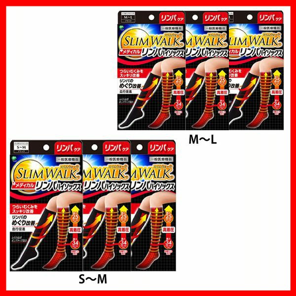 【3個セット】スリムウォークメディカルリンパHS 黒 ピップ 全2サイズ SMサイズ 着圧ソックス スリムウォーク 血行促進 むくみ改善 段階圧力設計 高着圧 リンパの流れを改善 一般医療機器 MLサイズ 送料無料