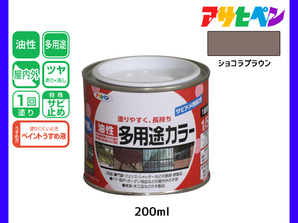 アサヒペン 油性多用途カラー 200ml (1/5L) ショコラブラウン 塗料 ペンキ 屋内外 ツヤあり 1回塗り サビ止め 鉄製品 木製品 耐久性