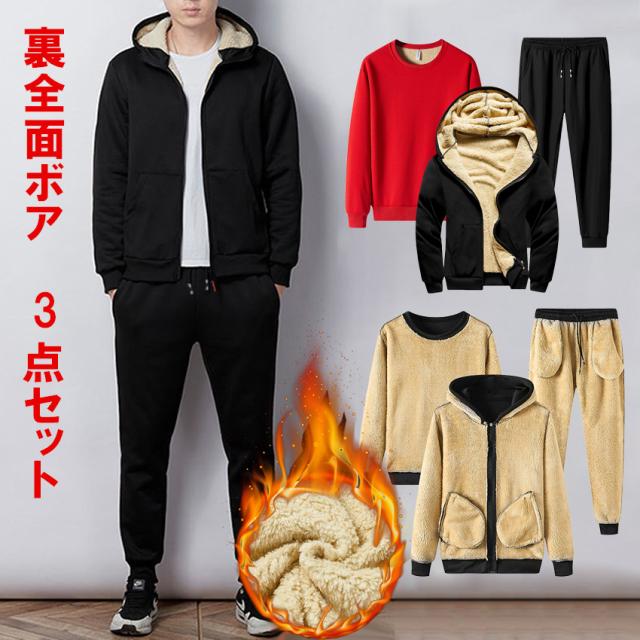 送料無料セットアップジャージ上下セットスウェットパーカーメンズ上下裏ボア裏起毛スエット上下 暖かい3点セット部屋着ルームウェアカジュアルパーカージップアップ プールオーバーパーカー防寒抜群 パーカー 長袖 暖かい