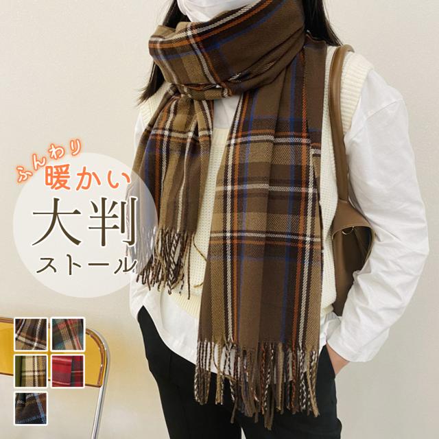 春新作 ストール 大判 レディース マフラー おしゃれ かわいい 大きい 羽織り ひざ掛け チェック フリンジ 黒 ロング 秋冬 お出かけ 防寒 防風 寒さ対策 あたたかい 柔らかい ふわふわ チェックストール ショール 肩掛け 膝掛け クリスマス 誕生日 ギフト
