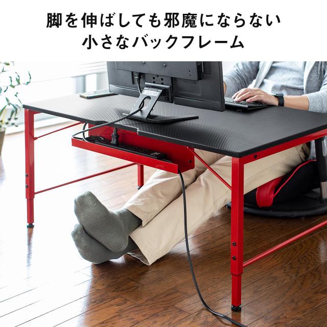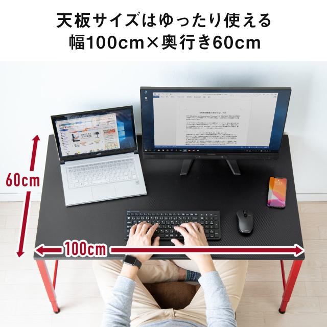 ゲーミングローデスク 高さ3段階調整 幅100cm 奥行60cm 電源タップ受け カーボン調天板 レッドフレーム[100-DESKL010BKR]