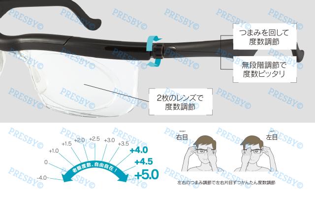 ・度数調節幅:+0.5D〜+4.0D
