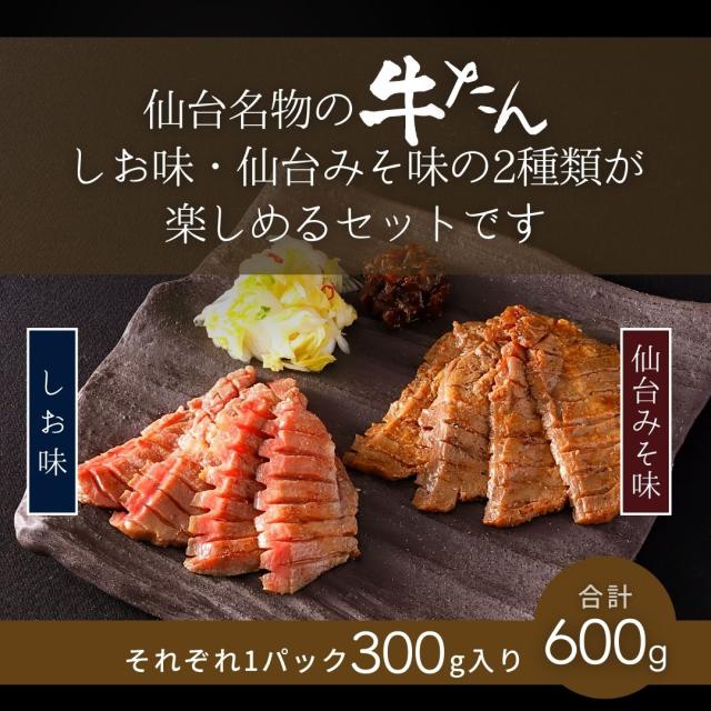お歳暮 牛タン 仙台味噌味 塩味 2種 食べ比べ 詰め合わせ 600g 厚さ7mm ギフト 食品 焼肉 焼き肉 牛たん たん 牛肉 味つけ肉 味付き肉 送料無料 おかず お惣菜 詰合せ セット のし対応 プレゼント 贈り物 お返し ギフト 誕生日 御祝 御礼 クリスマス