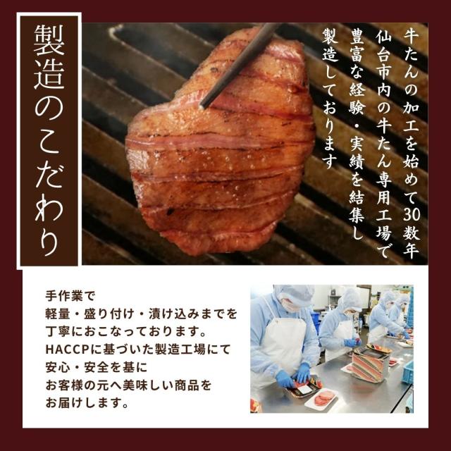 牛たんの加工を始めて30数年、仙台市内の牛たん専用工場で豊富な経験・実績を結集し製造しております。