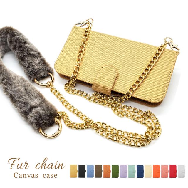 Galaxy A22 5G SC-56B ギャラクシーA22 スマホケース おしゃれ かわいい 手帳型ケース カバー キャンバス 生地 帆布 ファー チェーン 付き キラキラ
