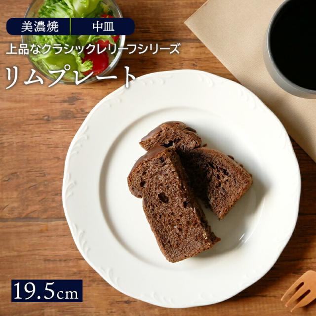 リムプレート 19.5cm クラシックレリーフ ホワイトプレート お皿 皿 洋食器 おしゃれ 食器 中皿 取り皿 ケーキ皿 サラダ皿 デザートプレート パン皿 カフェ食器 カフェ風 シンプル