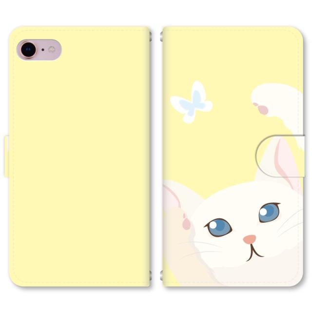 スマホケース 手帳型 iPhone13 iPhoneSE2 アイフォン 8 aquos sense GooglePixel xperia galaxyなど多機種制作対応 m276_猫アップ(イエロー)