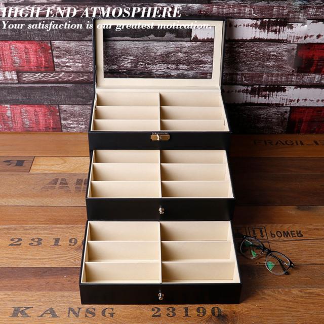 メガネケース 収納ボックス メガネ サングラス 収納ケース ボックス 眼鏡 小物 コレクションケース 三段式 18本用