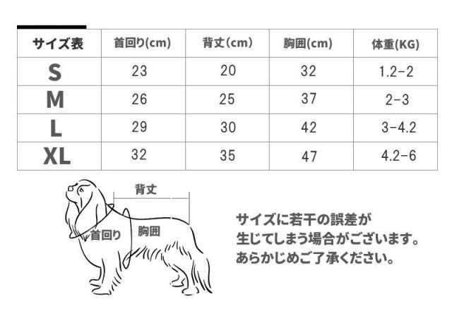 ふわふわ柔らか起毛素材、ぽかぽか暖かい着心地抜群 ストレスを感じにくく愛犬にやさしいデザインです。 サイズ: S:首回り約23cm 背丈約20cm 胸囲約32cm 体重1.2-2kg M:首回り約26cm 背丈約25cm 胸囲約37cm 体重2-3kg L:首回り約29cm 背丈約30cm 胸囲約42cm 体重3-4.2kg XL:首回り32cm 背丈約35cm 胸周約47cm 体重4.2-6kg サイズに若干の誤差(1-2cm)が生じることがございます。 産地:中国 |