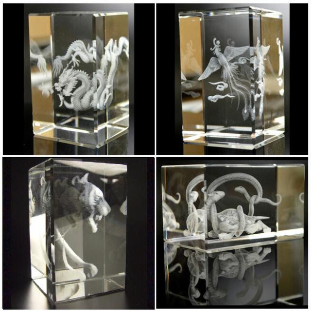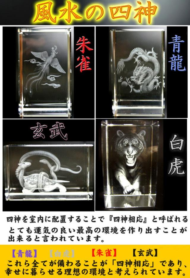 NO-27 【送料無料】 風水の高級クリスタルレーザー彫り置物 風水の四神獣セット 四神相応/青龍/白虎/朱雀/玄武/4神/青竜/龍の置物/五本爪の皇帝龍/開運/風水グッズ