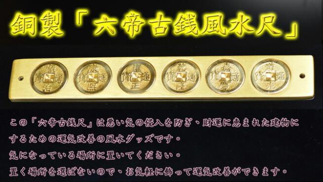 【送料無料】 ≪銅製≫六帝古銭風水尺 縁起物/開運/水晶/お守り/風水グッズの置物/魯班尺/六帝古銭尺/運気改善/十二方位牌/気の安定盤