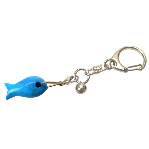 【送料無料】 ●ハウライト ターコイズ● キーホルダー◎風水のお魚さん(フィッシュ) 《危険回避/幸福/お守り/》天然石 風水グッズ/開運/占い/水晶/パワーストーン/風水金魚