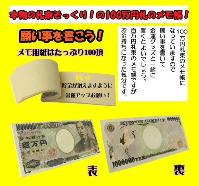 ★リッチ風水★100万円札束!本物そっくりの札束メモ帳付き