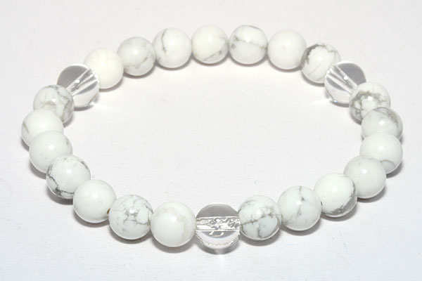 【送料無料】ホワイトハウライトの水晶入りブレスレット 癒し・浄化・イライラ・天然石パワーストーン・風水開運
