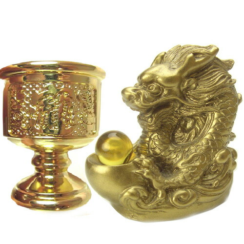 龍は水が必要な動物なので付属の水盃に 毎日新鮮な水を入れ、口元に置くい下さい。 水をあげると龍パワーが増強します。 |