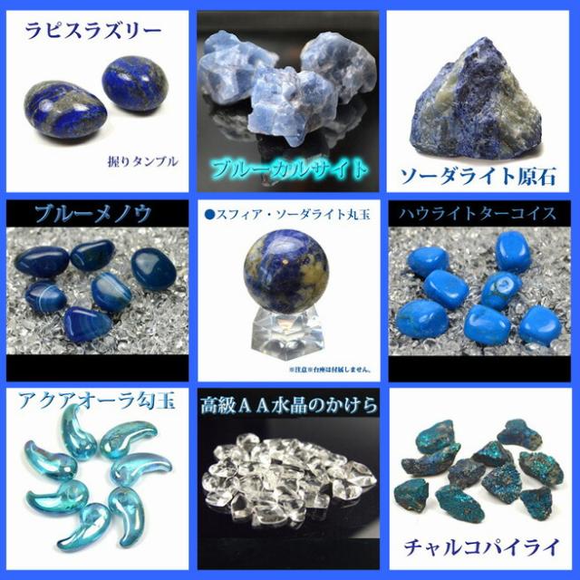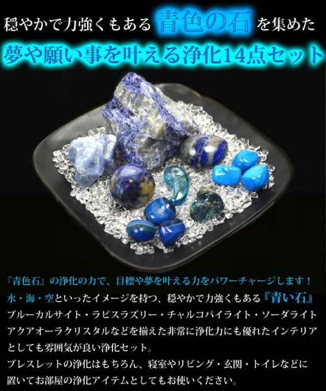 【送料無料】NO-23-2 願い叶える!青い石浄化14点セット 『青色石』の力で目標や夢を叶える力をパワーチャージ! ブルーカルサイト/ソーダライト/ラピスラズリー/ アクアオーラクリスタル水晶/チャルコパイライト/ ブレスレット/天然石/パワーストーン