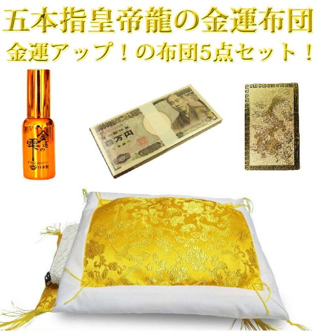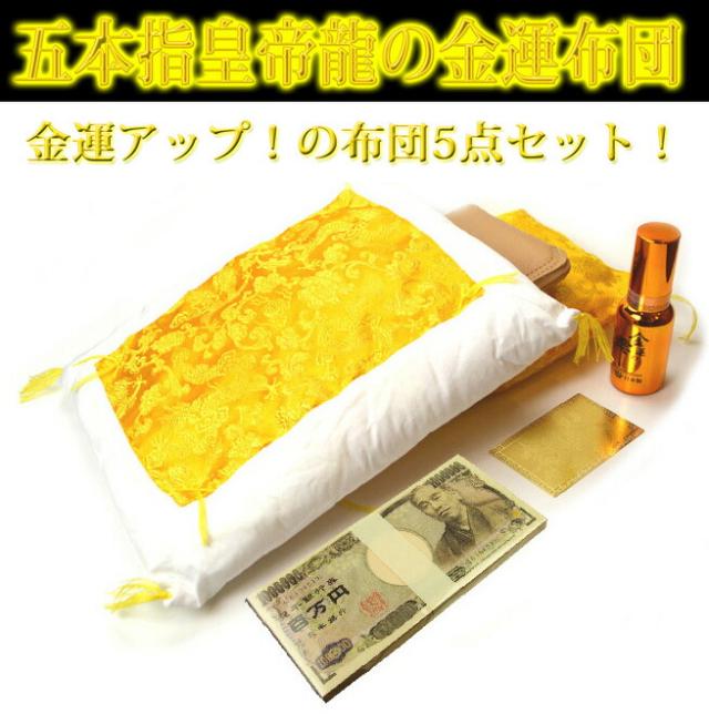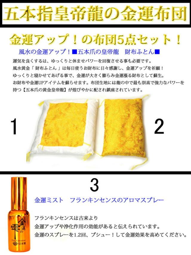 【送料無料】【金運アップ!お財布のふとん5点セット】 ≪5本指の皇帝龍≫お財布布団! (敷布団・掛け布団・金運スプレー・開運カード・100万円メモ帳) 財運金運の風水グッズ/金運財布5本爪金運の雫アロマオイル