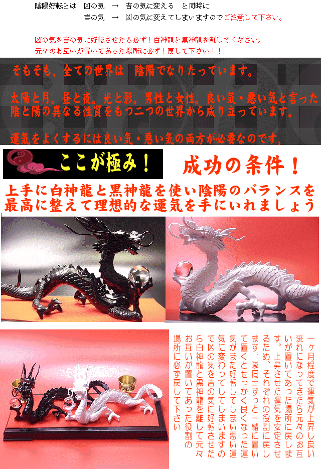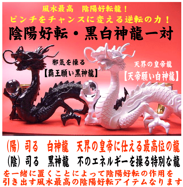 【当店限定品】【送料無料】 陰陽好転・黒白神龍8点セット ◆風水最高のピンチをチャンスに変えるアイテム◆特典◆天然水晶玉&黄金水杯付き 天然石ドラゴンボールを持った龍の置物/ブラック&ホワイトドラゴンの風水グッズインテリア