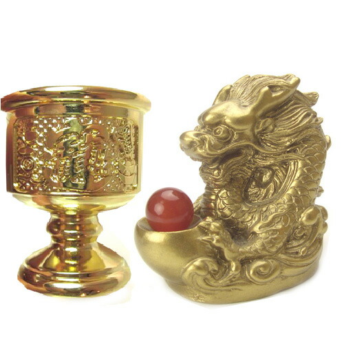龍は水が必要な動物なので付属の水盃に 毎日新鮮な水を入れ、口元に置くい下さい。 水をあげると龍パワーが増強します。 |