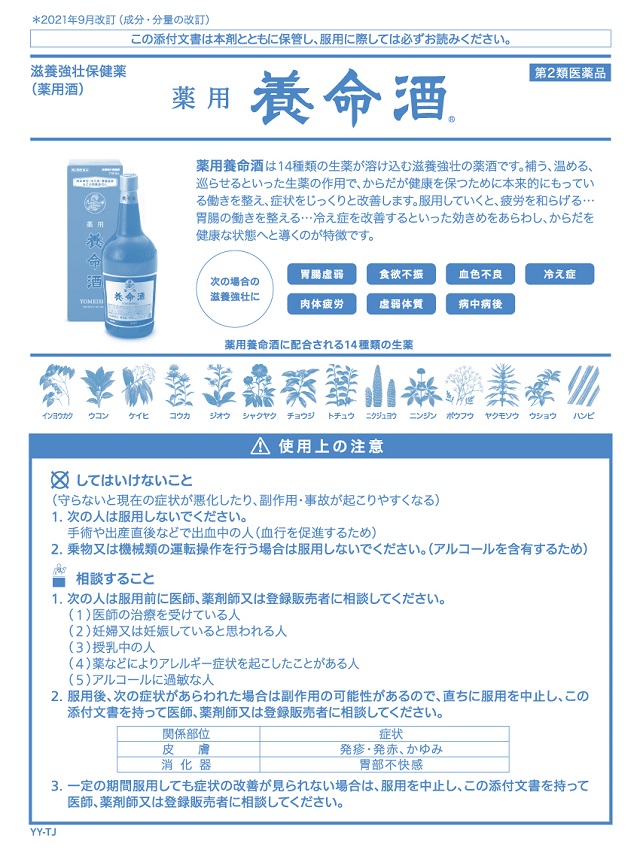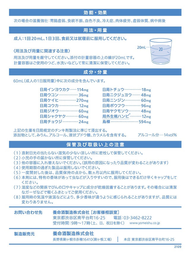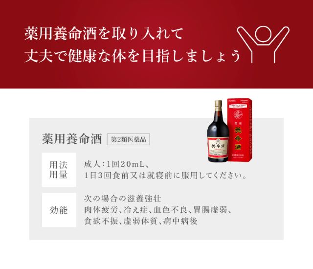 商品名 第2類医薬品 薬用養命酒 1000mL 養命酒製造 容量 1L JANコード 4987236000065 メーカー 養命酒製造 カテゴリー 医療・介護・医薬品>医薬品>滋養強壮剤・ドリンク>滋養強壮剤・ドリンク【第一・二類医薬品(指定第二医薬品含む)】 効果・効能 胃腸虚弱 、食欲不振、血色不良、冷え症、肉体疲労、虚弱体質、病中病後 用法・用量 成人:1回20mL、1日3回、