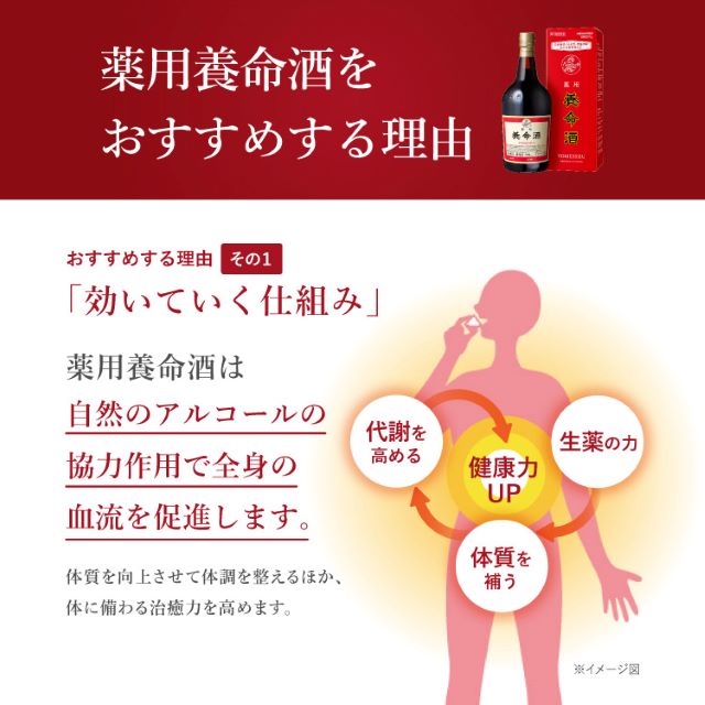 薬用養命酒は14種類の生薬が溶け込む滋養強壮の薬酒です。補う、温める、巡らせるといった生薬の作用で、からだが健康を保つために本来的に
