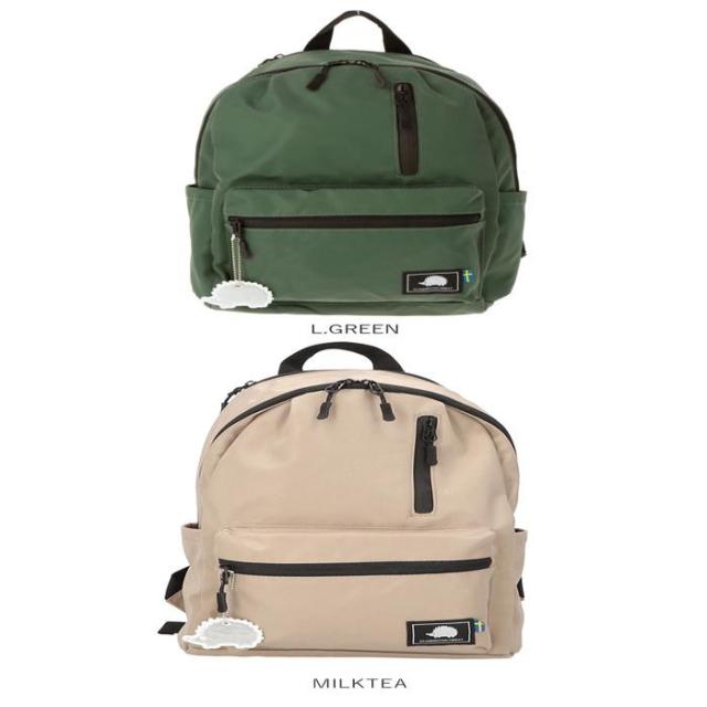 ハリネズミのロゴが特徴的な、「SCANDINAVIAN FOREST(スカンジナビアン・フォレスト)」から北欧カラーが可愛い12ポケットデイパックが登場!メインルームにはオープンポケット×3、ファスナーポケット×1、ペットボトルや折りたたみ傘を立てて入れられるポケット×2を装備。使い分けができて便利!またメインルームの開口部は大きく開くダブルファスナー仕様!荷物を見つけやすく物の出し入れが楽なのも魅力的なポイント。フロントには、ファスナーポケット×2を装備。上部のファスナーは止水ファスナーになっていて雨の日も安心!両サイドの外側にも折り畳み傘やボトルが入るオープンポケットが2つ。背面は上部にファスナーポケット×1、左側面にはメインルームにアクセスできる直結ファスナー付き。さらりとした高密度のナイロン素材を使用。軽量かつ荷物をしっかりと守ってくれる。はっ水加工済みで突然の雨でも荷物が濡れにくく安心◎ハリネズミのラバーチャーム付き。荷物がたくさん入るからデイリー使いはもちろん、通勤通学時にも活躍♪