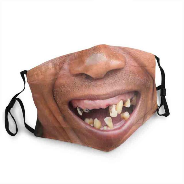 歯抜けだけでなく鼻の穴から鼻毛が出た陽気な顔の男の人か女の人かわからないジェンダーフリーなオモシロ笑顔のパーティーグッズ。