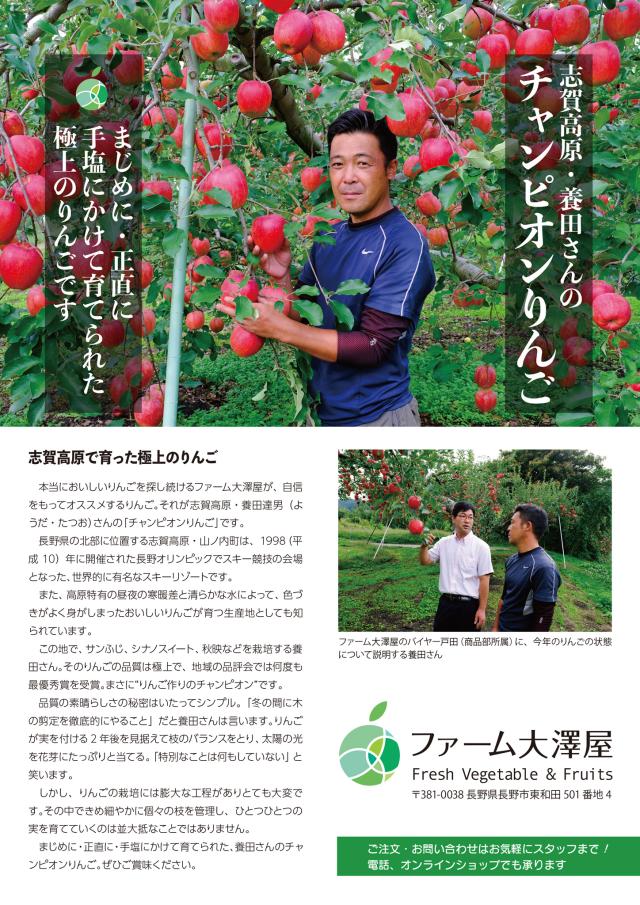 生産者は、地域の品評会で何度も最優秀賞を受賞しているりんご作りの名人・養田達男(ようだ・たつお)さん。