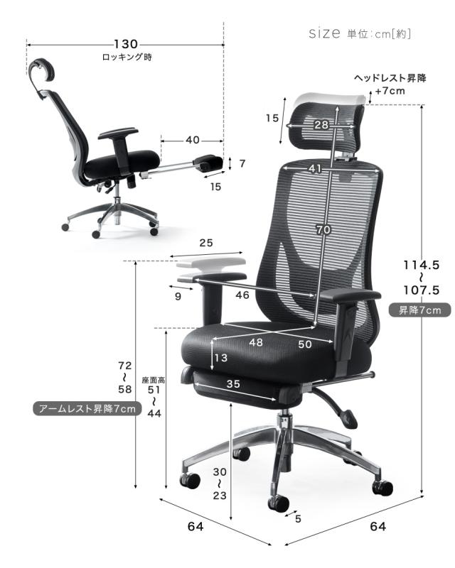 ■サイズ外寸:幅64×奥行64〜130×高さ107.5〜114.5cm