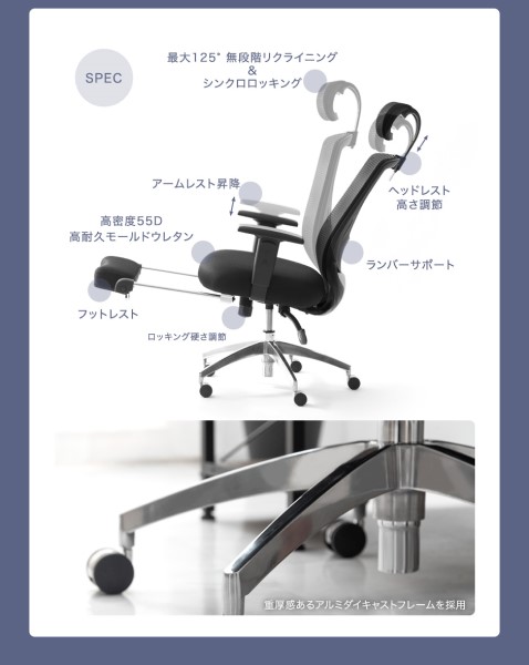 フットレスト付 オフィスチェア ワークチェア ロッキング PCチェア PCチェアー ゲーミングチェアー デスクチェア デスクチェアー 在宅勤務 在宅ワーク リモートワーク おしゃれ ブラック【商品番号:31500027】