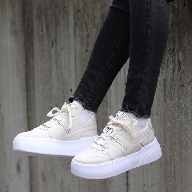 トレンドの厚底ソールとセンターテープがアクセントのダッドスニーカー。
