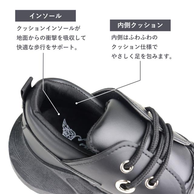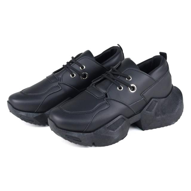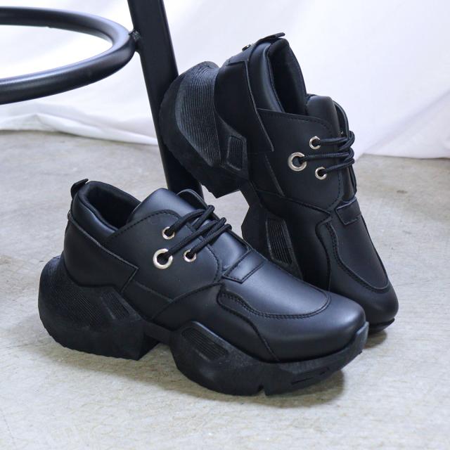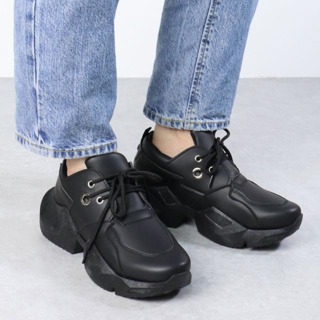 【返品交換不可】シューズ スニーカー ローカットスニーカー ダッドシューズ ダッドスニーカー レディース 靴 厚底 3ホール レースアップ モード 美脚 脚長 6cmヒール 22.5cm〜25.5cm 黒 ブラック LOVEHUNTER ラブハンター No.1558