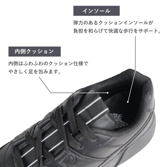 履き口周りのクッションが足をしっかりと包み込み、適度なクッション性のあるインソールで快適な履き心地。