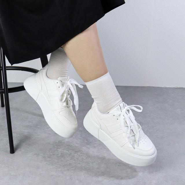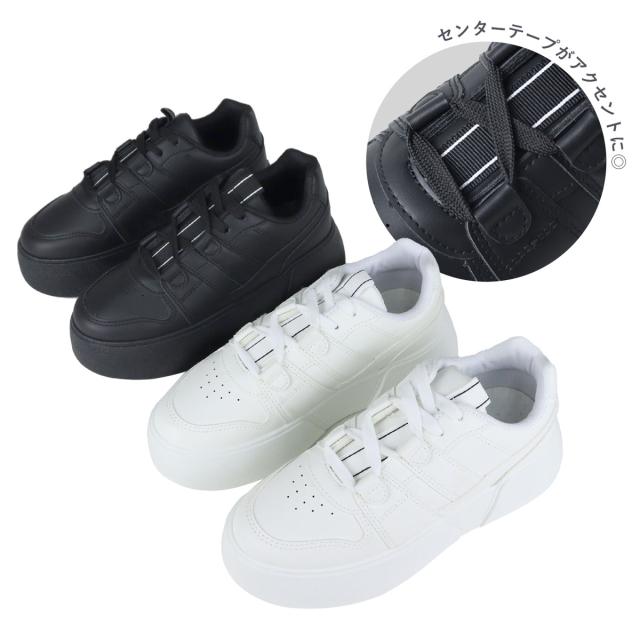 トレンドの厚底ソールとセンターテープがアクセントのダッドスニーカー。