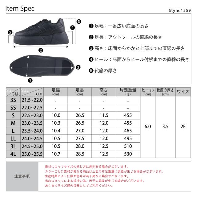 【返品交換不可】スニーカー レディース ダッドスニーカー 厚底 インソール 疲れにくい 紐靴 6cmヒール 22.5-25.5cm 黒 ブラック No.1559 ラブハンター