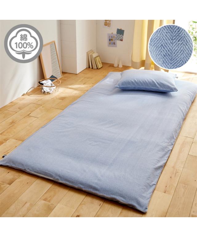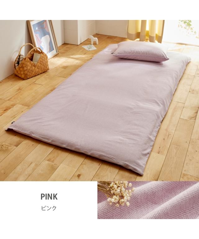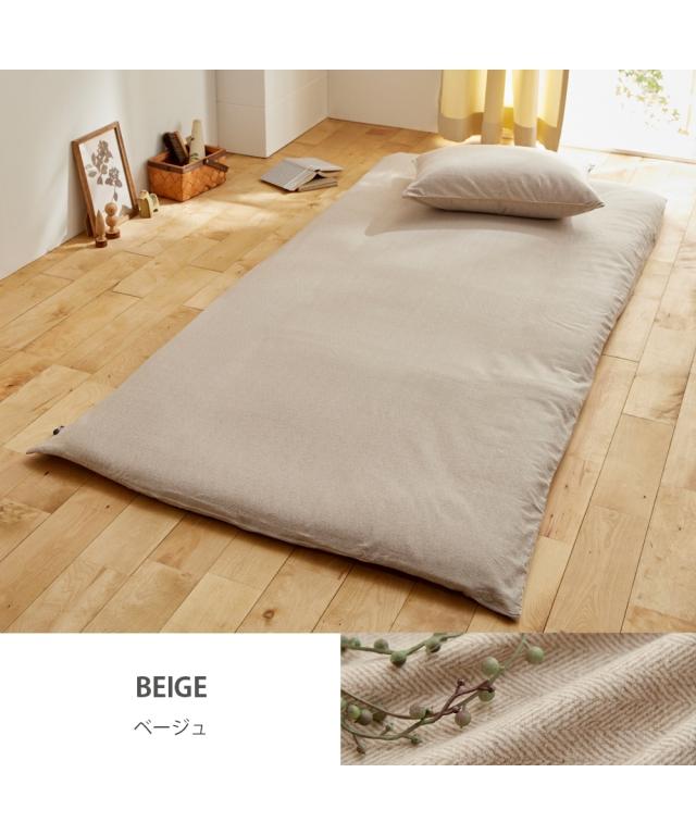 寝具 敷き布団 カバー 着脱簡単 心地よい 綿100% 起毛ヘリンボーン柄敷き 布団 L字ファスナー グレー/サックス/ピンク/ベージュ シングル ニッセン nissen